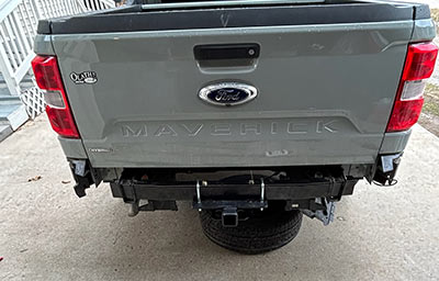 The following pics are of a 2022 Ford Maverick Hybrid using the U-Bolt installation methods and the Harbor Freight HAUL-MASTER 5000 lb. – Step Bumper Receiver Part #69670. As previously mentioned, I strongly recommend going this route and with this hitch receiver.